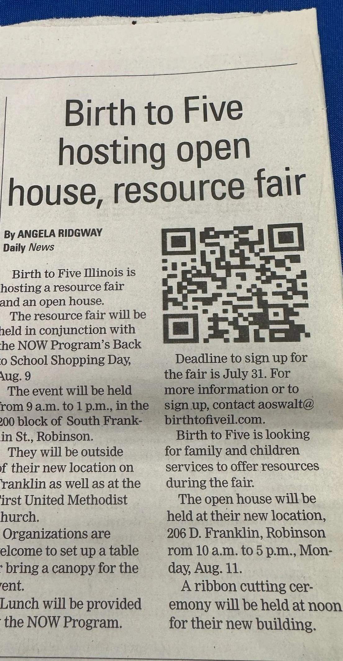 Birth to Five Illinois is hosting a resource fair and an open house.
